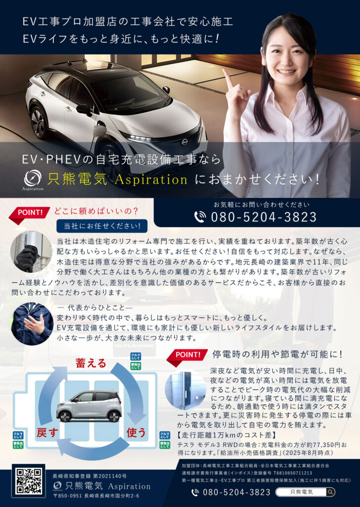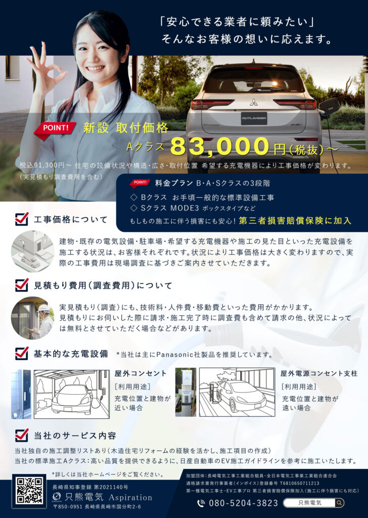 今後EV・PHEV車検討してるお客様に充電設備工事をお届けしたいですね