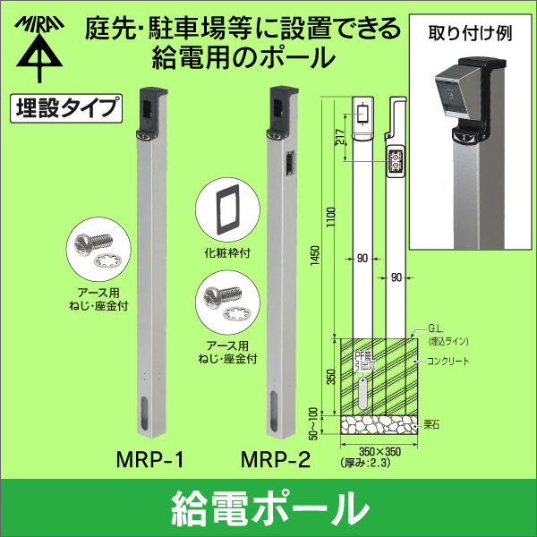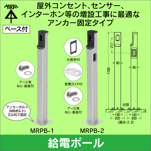 | 適合ポール | 未来工業製給電ポール MRP-1/MRP-2、MRPB-1/MRPB-2、MRPD-1/MRPD-2、MRPDB-1/MRPDB-2 |